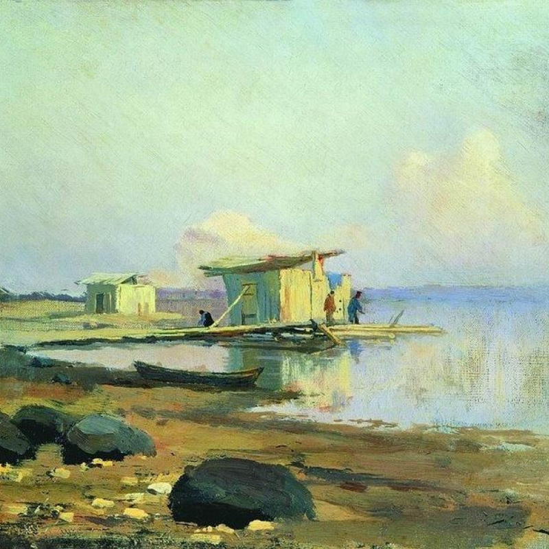 - «Перед дождем»: Эта работа полна предчувствия грозы. Тёмные тучи нависают над рекой, вода становится свинцово-серой. Чувствуется напряжение и ожидание бури.